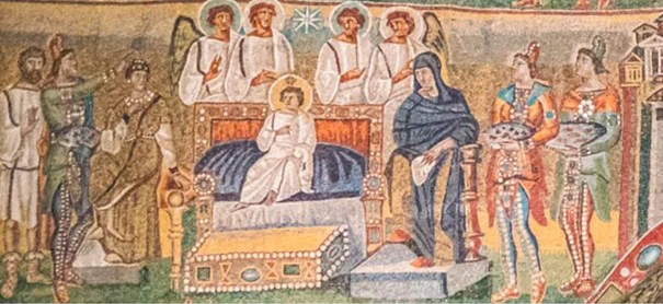 Trên một quan tài từ thế kỷ IV được phát hiện trong khu vực Vatican, ta thấy ba vị vua Phương Đông đi phía sau một ngôi sao sáu cánh, được đặt trong một loại bánh xe.
